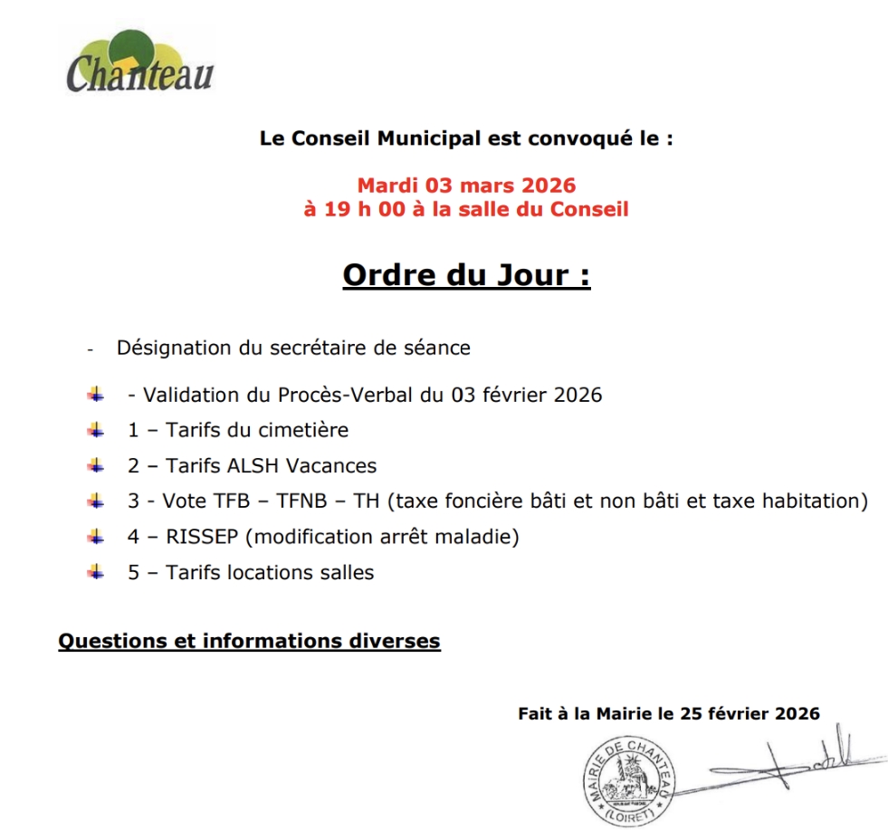 Conseil Municipal – Mardi 3 Mars 2026 – 19h