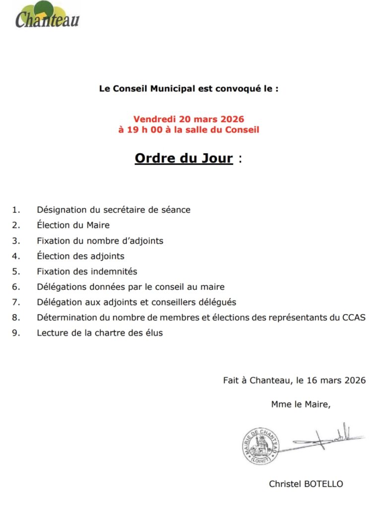 Conseil Municipal – Vendredi 20 Mars 2026 – 19h