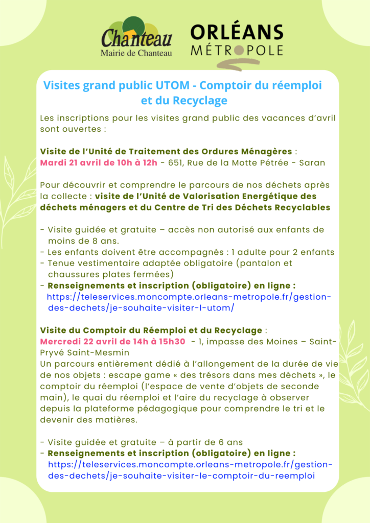 Info Orléans Métropole : Visites grand public UTOM / Comptoir du réemploi et du Recyclage